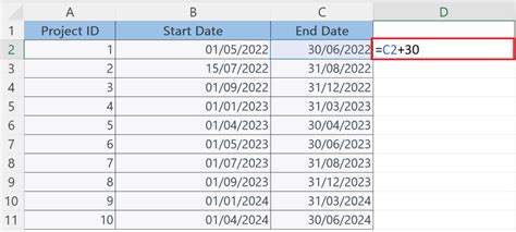 current date plus 30 days in excel