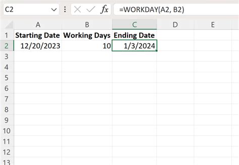excel add working days to date