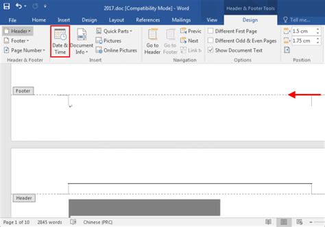 how to insert date in word header
